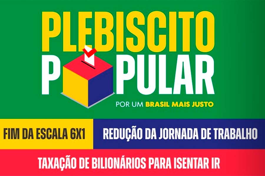Será lançado neste 1º de julho, terça-feira, o Plebiscito Popular sobre o fim da escala 6x1, taxação dos mais ricos e isenção do Imposto de Renda para assalariados que recebem até R$ 5 mil.